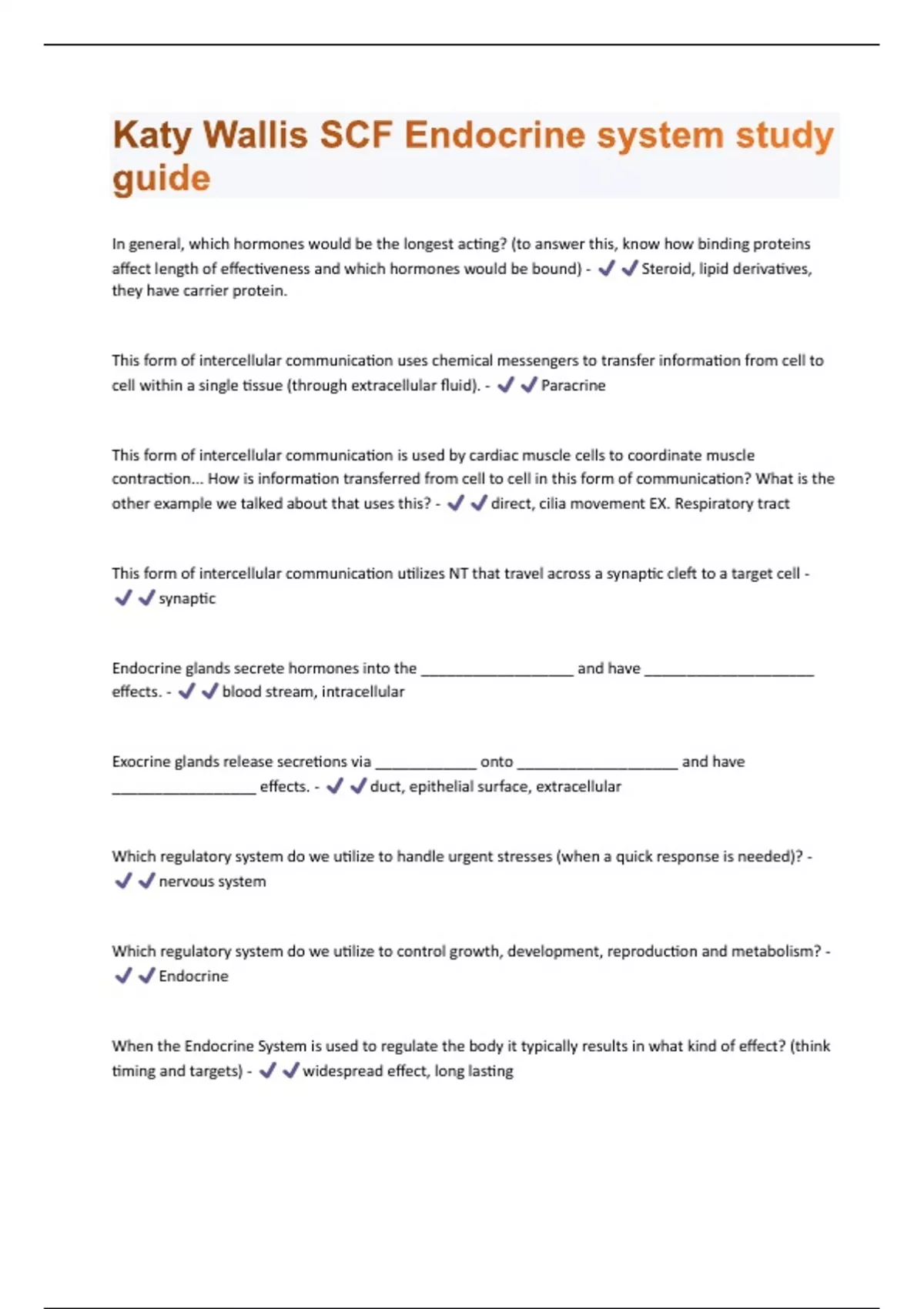 Katy Wallis SCF Endocrine system study guide Questions And Answers With 100% Correct Answers