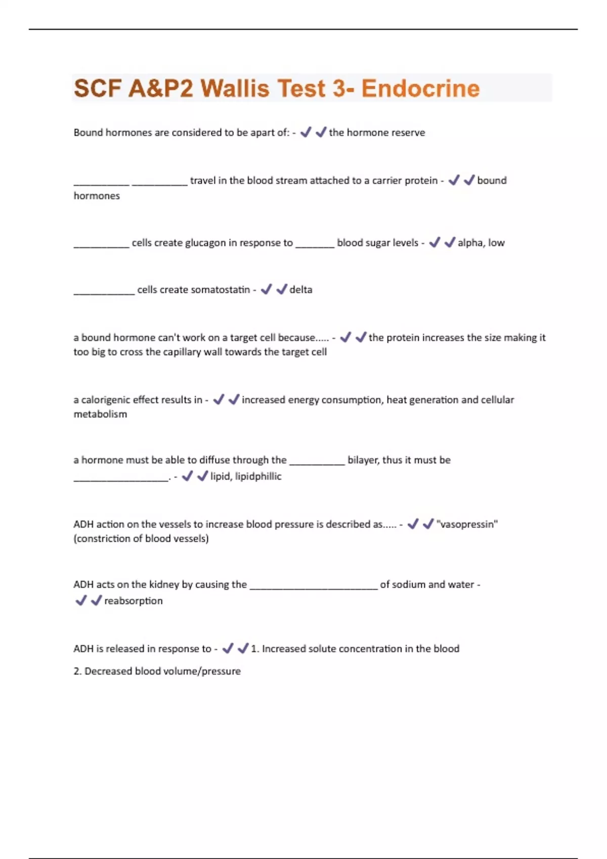 SCF A&P2 Wallis Test 3- Endocrine Questions And Answers Graded A+