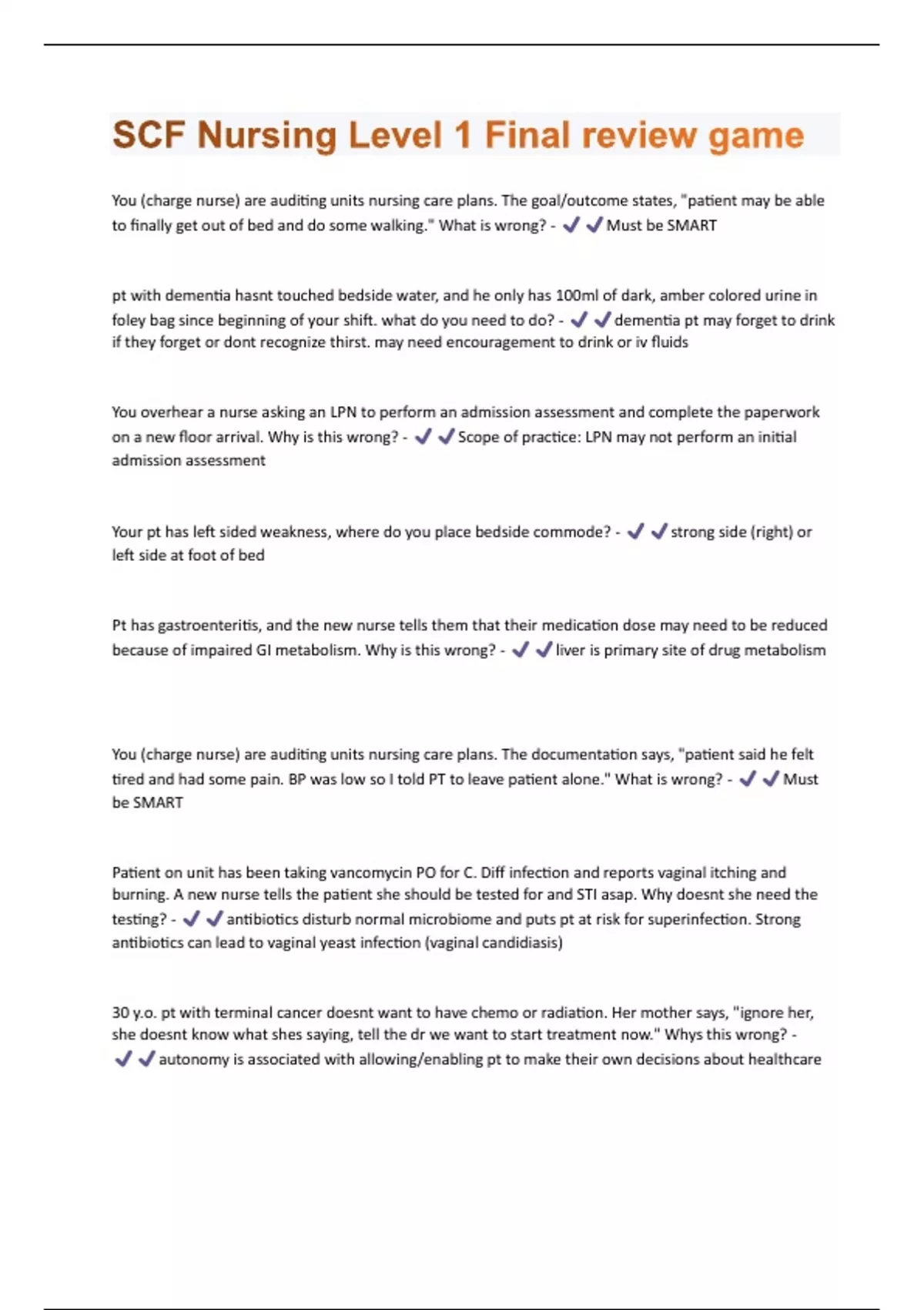 on a new floor arrival. Why is this wrong? - Scope of practice: LPN may not perform an initial