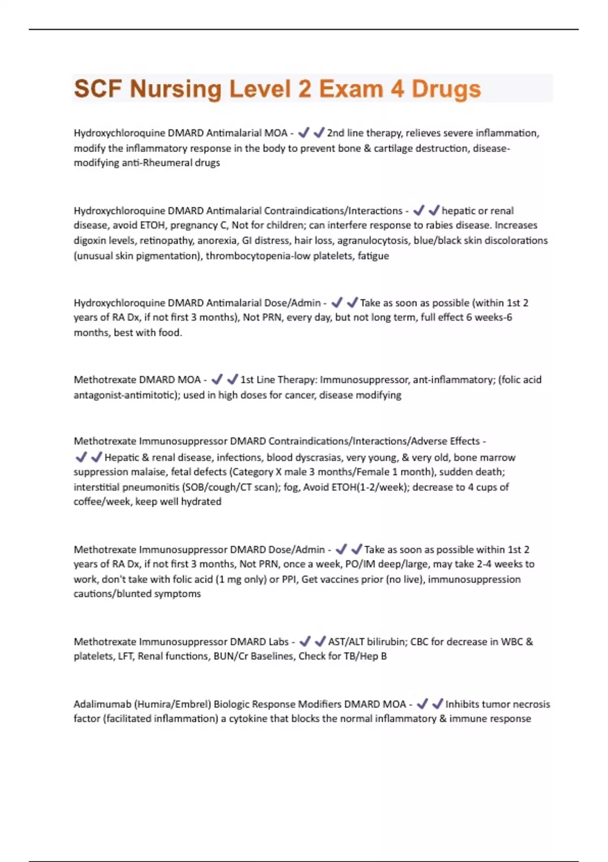 Methotrexate Immunosuppressor DMARD Labs - AST/ALT bilirubin; CBC for decrease in WBC &