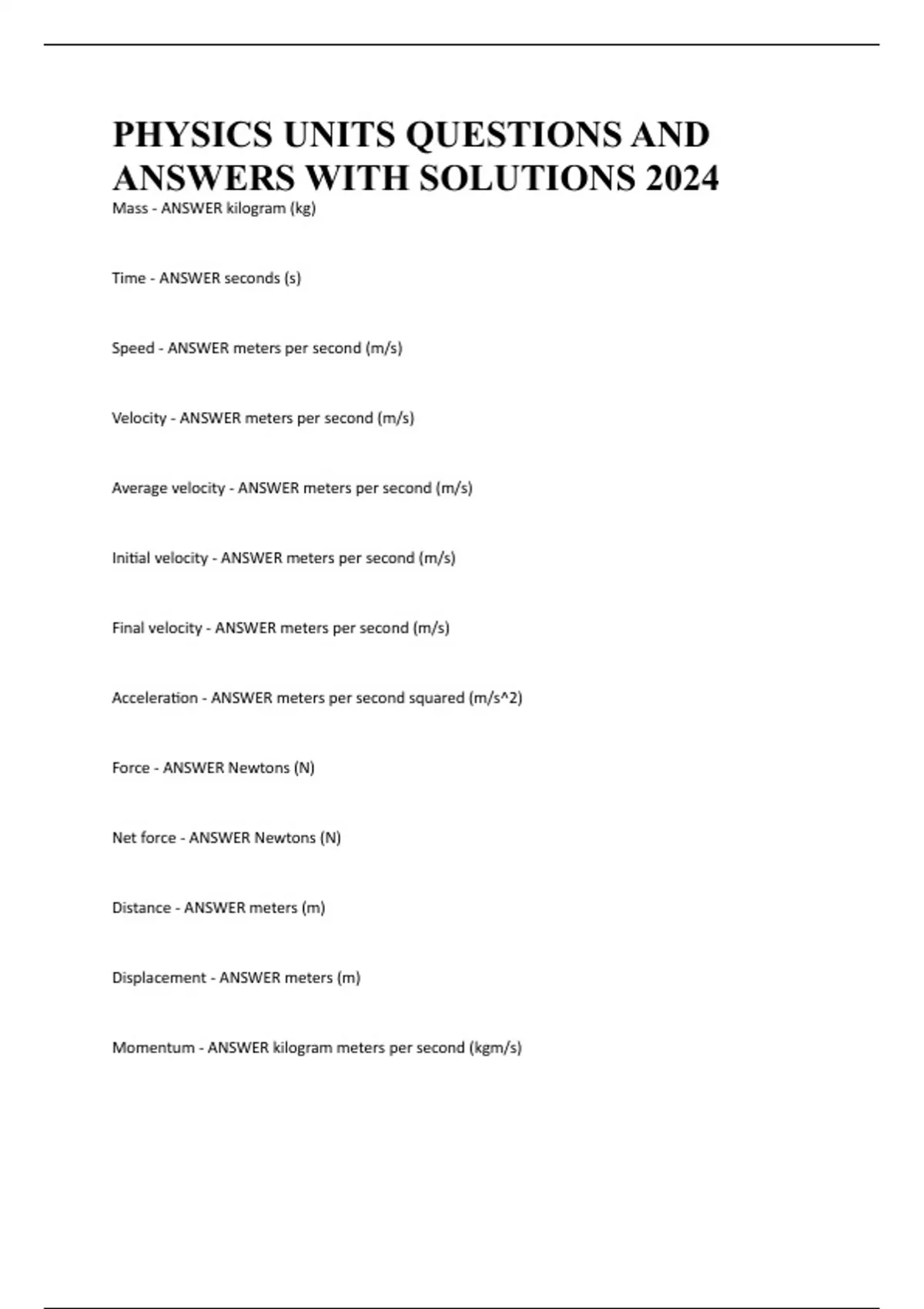Initial velocity - ANSWER meters per second (m/s)