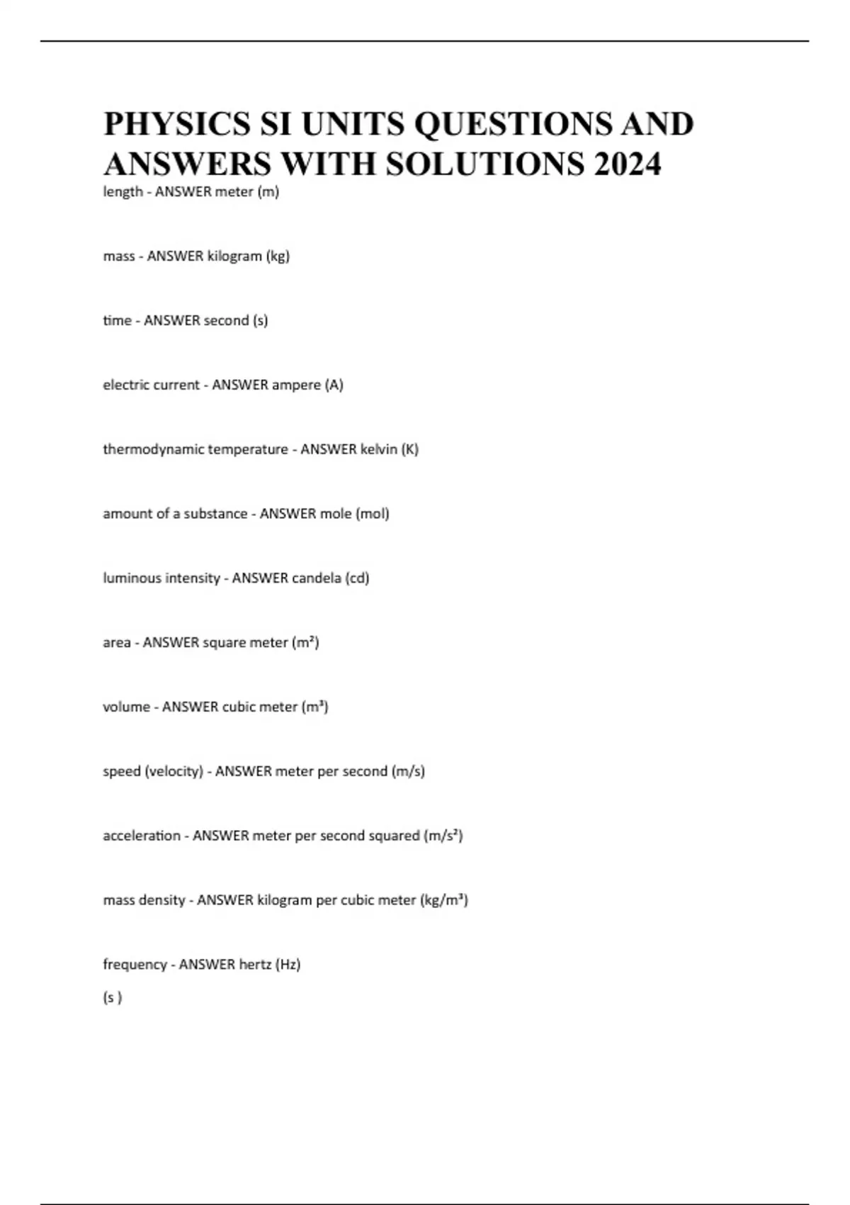 frequency - ANSWER hertz (Hz)
