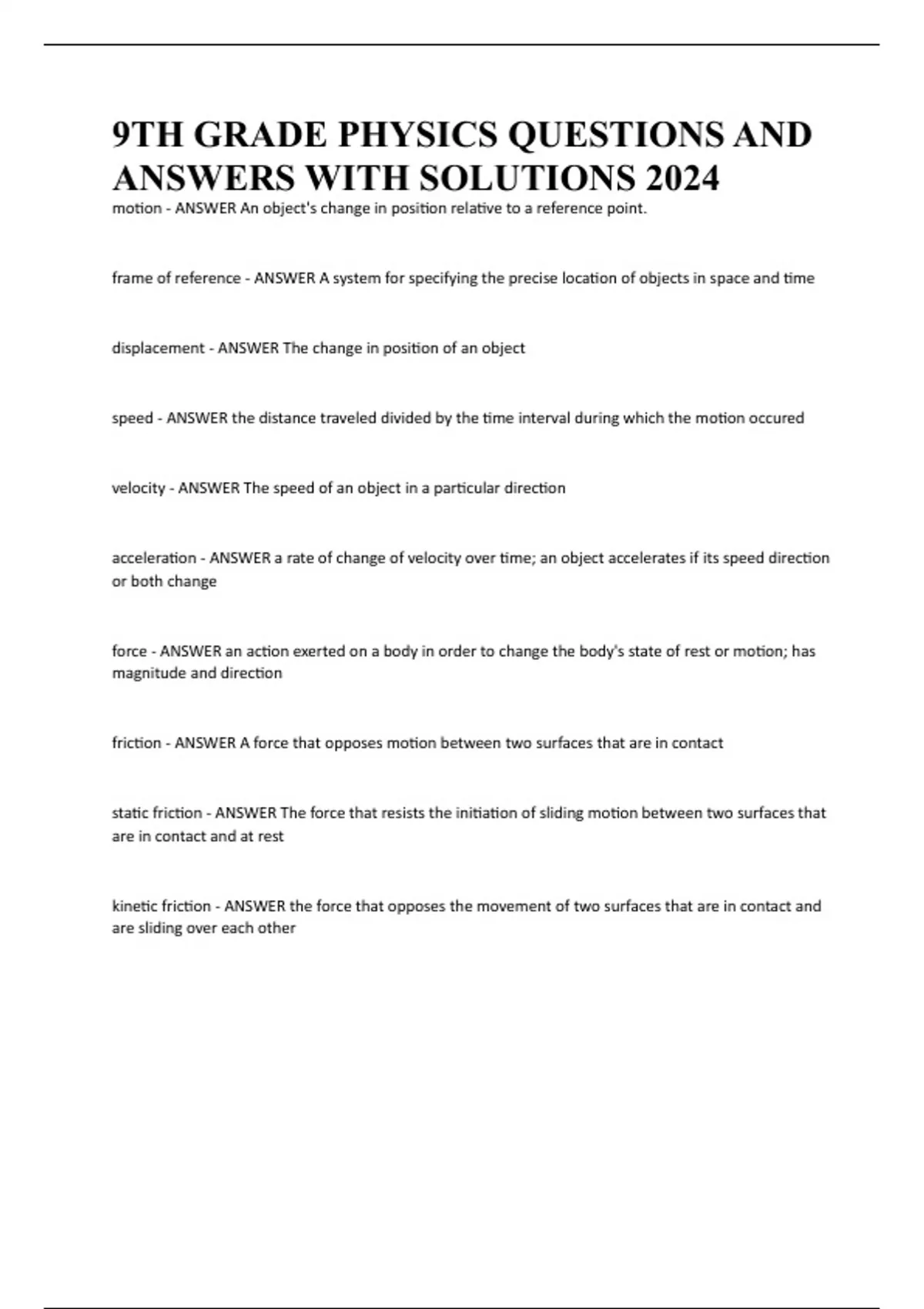 motion - ANSWER An object's change in position relative to a reference point.