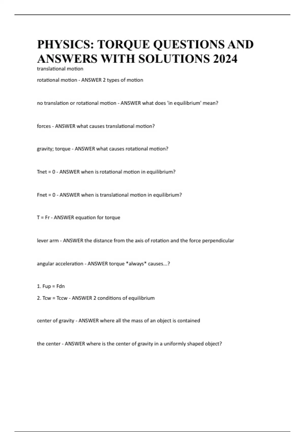 2. Tcw = Tccw - ANSWER 2 conditions of equilibrium