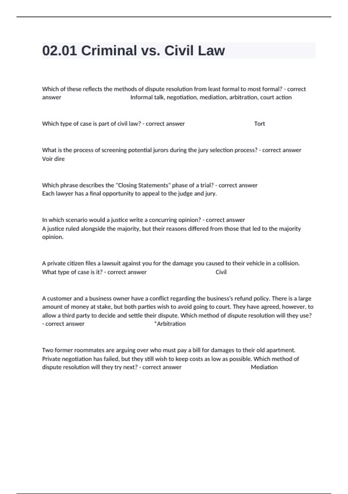What type of case is it? - correct answer Civil
