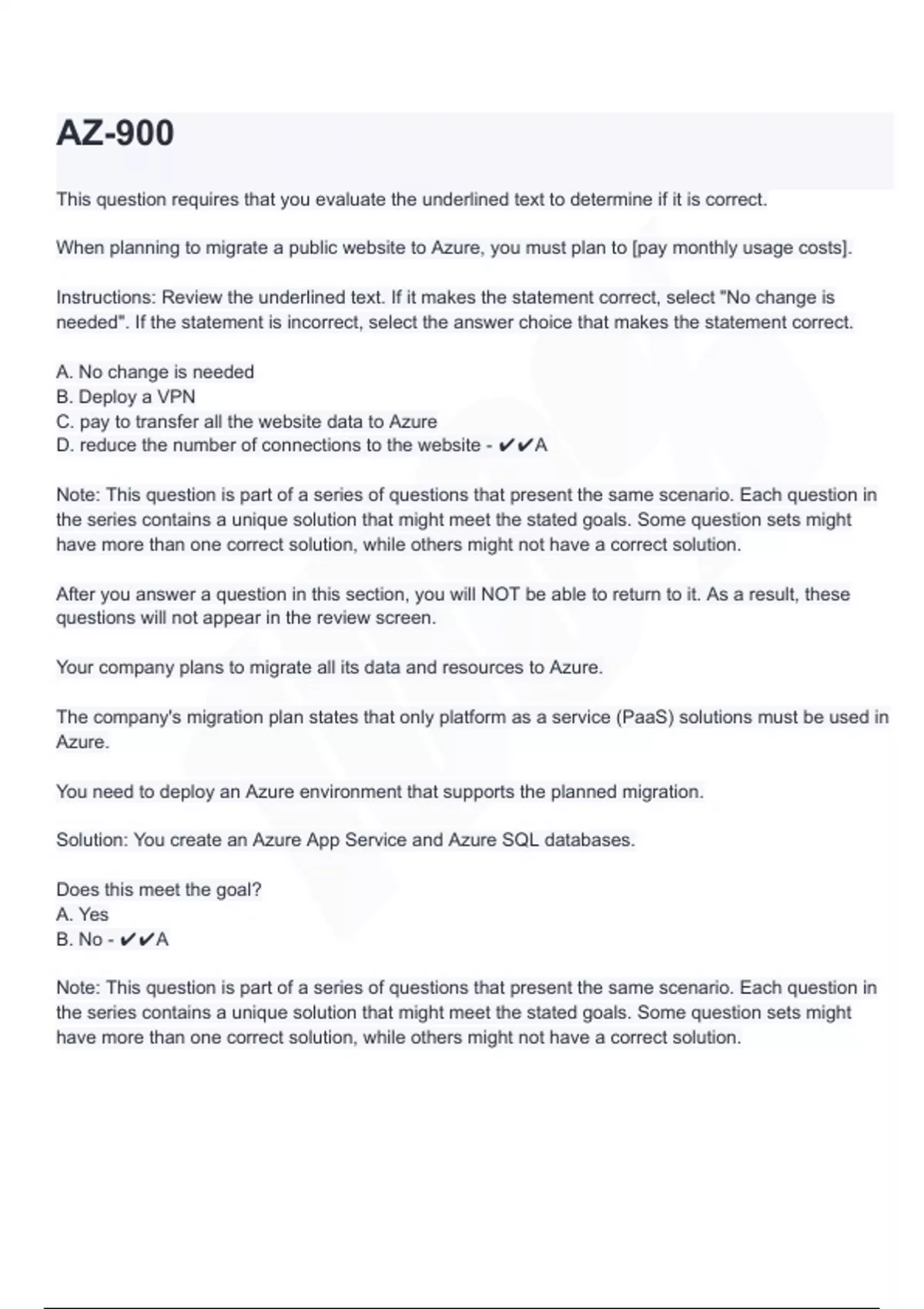 Solution: You create an Azure App Service and Azure virtual machines that have Microsoft SQL