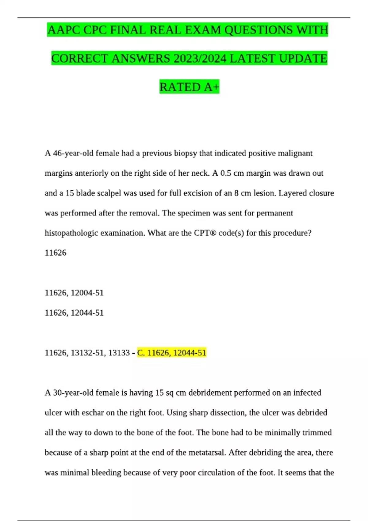 aapc cpc final real exam questions with correct an