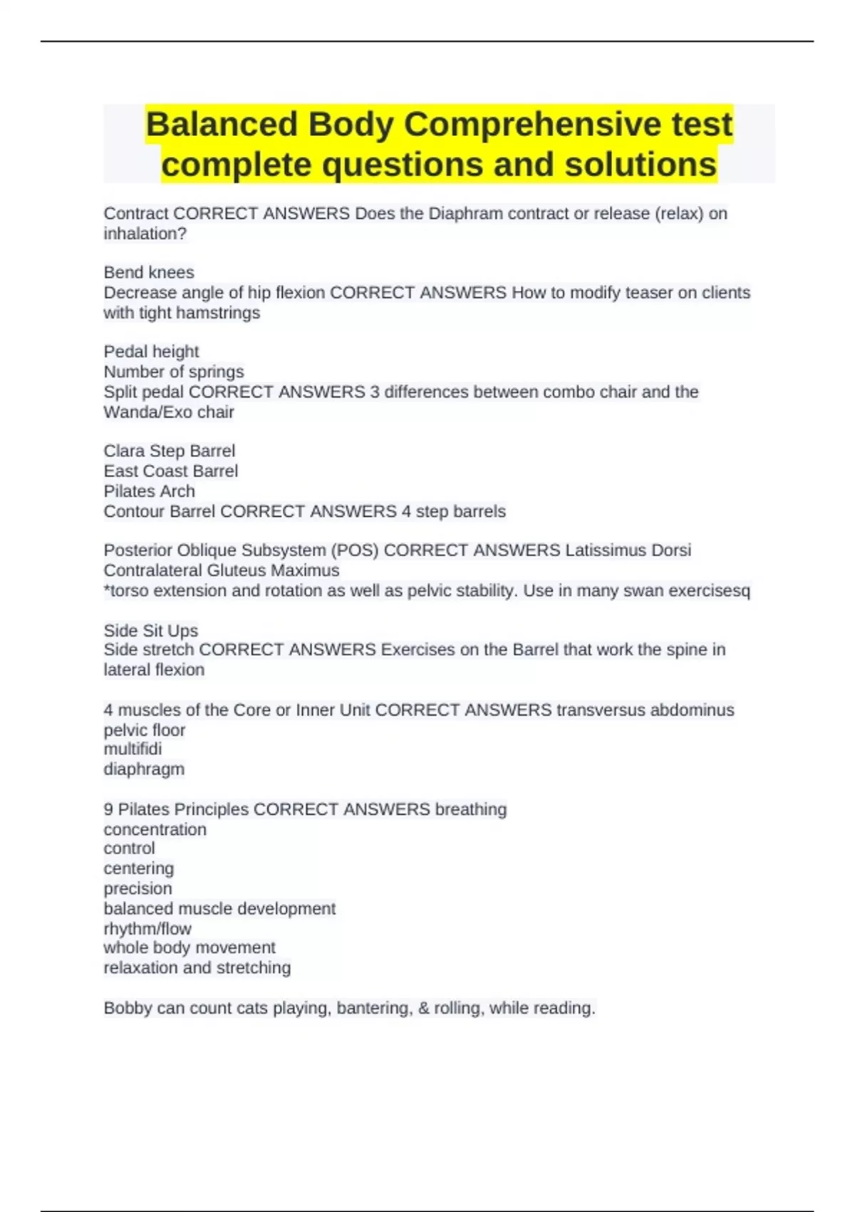 9 Pilates Principles CORRECT ANSWERS breathing