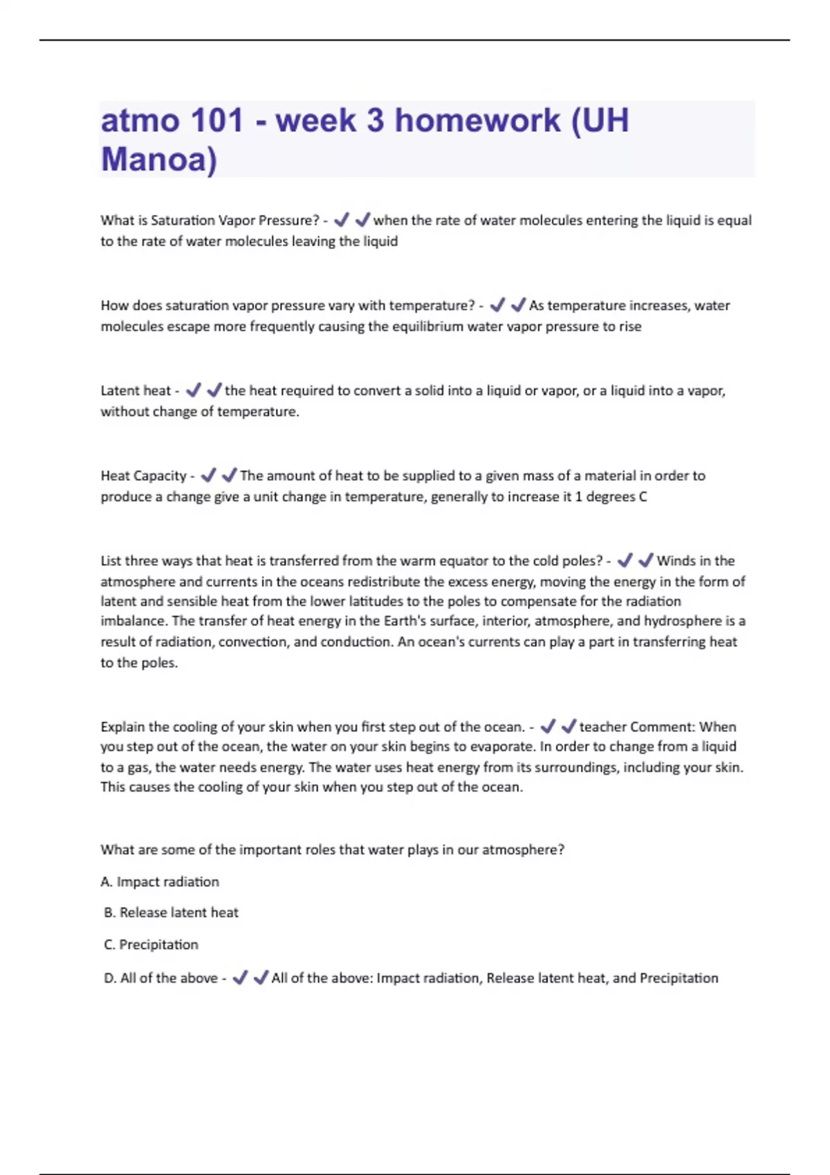 atmo 101 - week 3 homework (UH Manoa) Questions and Answers Latest;(2024/2025)/ Graded A+