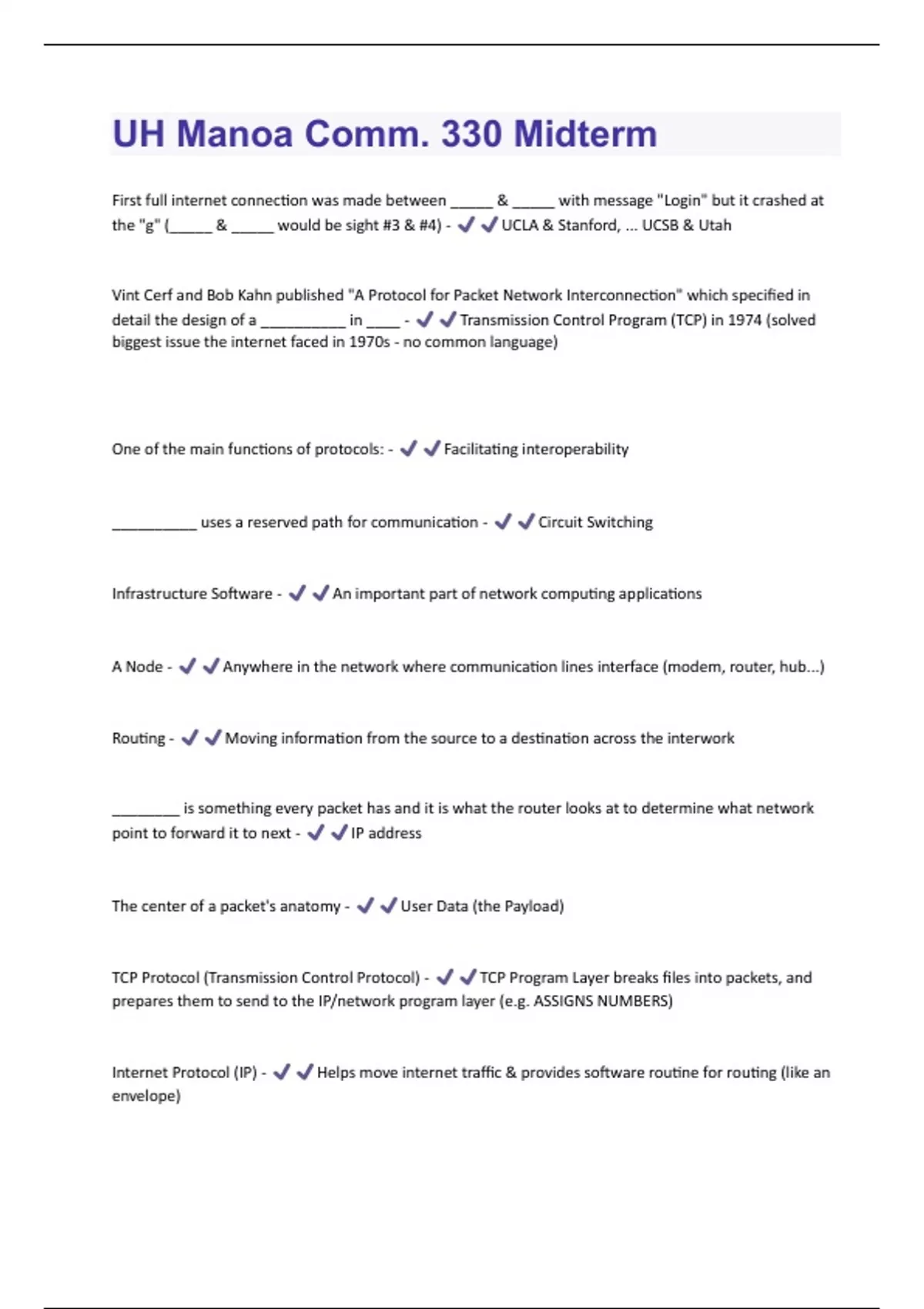 UH Manoa Comm. 330 Midterm Verified Questions And Answers With Verified Updates