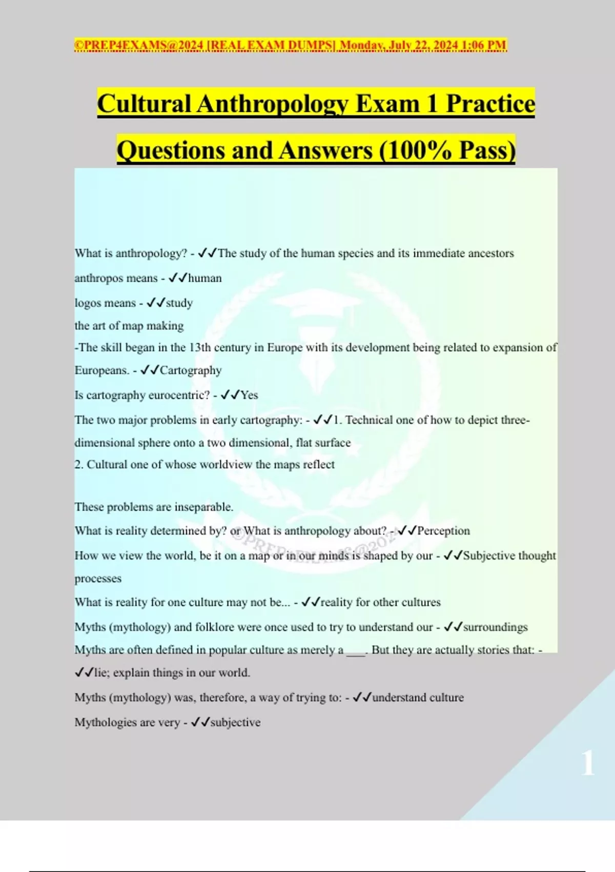 Cultural Anthropology Exam 1 Practice Questions and Answers (100% Pass)