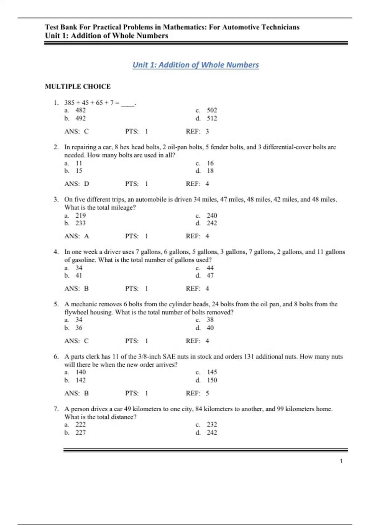 , Test Bank For Practical Problems in Mathematics: For Automotive Technicians