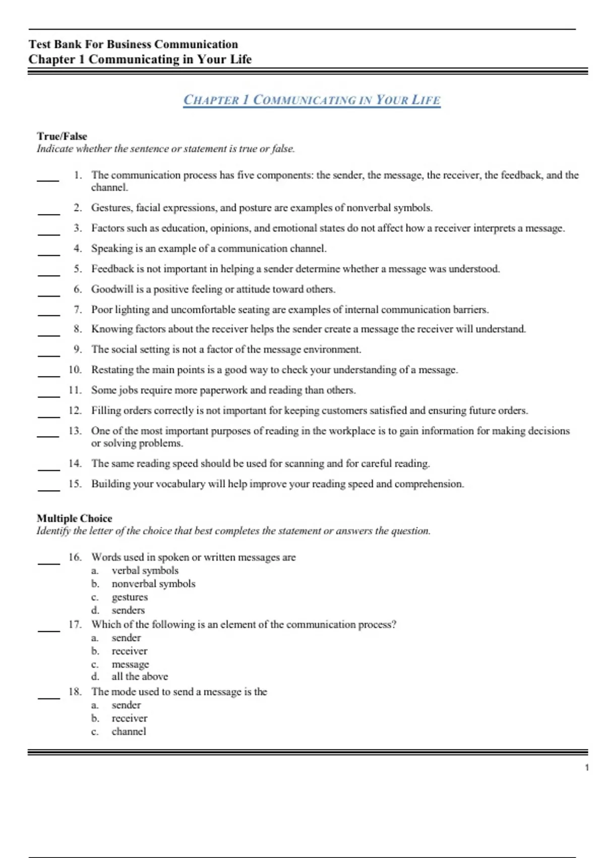 1. The communication process has five components: the sender, the message, the receiver, the feedback, and the