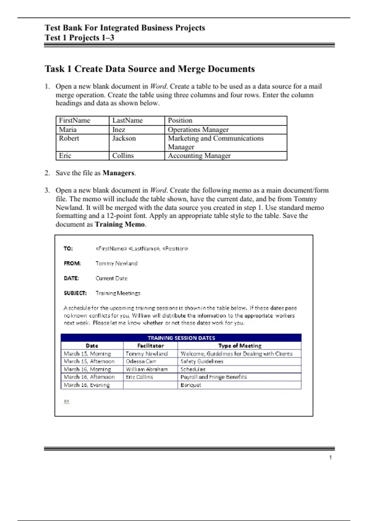 , Test Bank For Integrated Business Projects