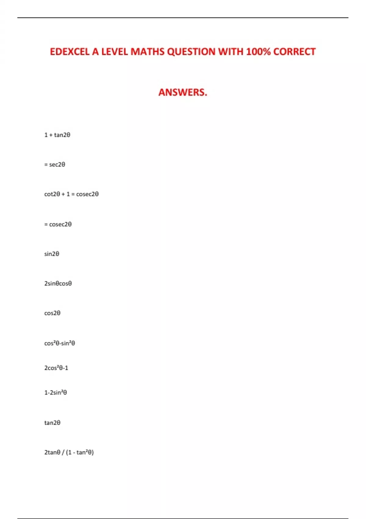 cot2θ + 1 = cosec2θ