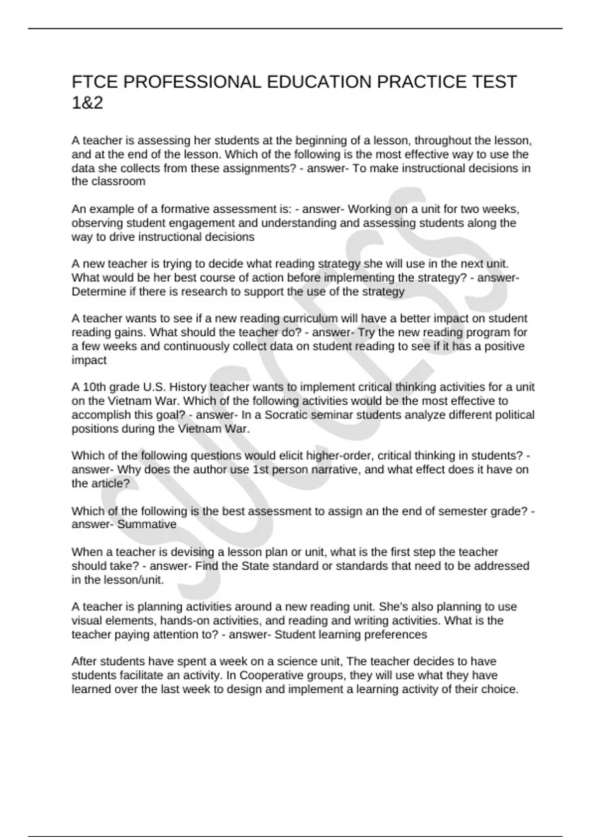 FTCE PROFESSIONAL EDUCATION PRACTICE TEST