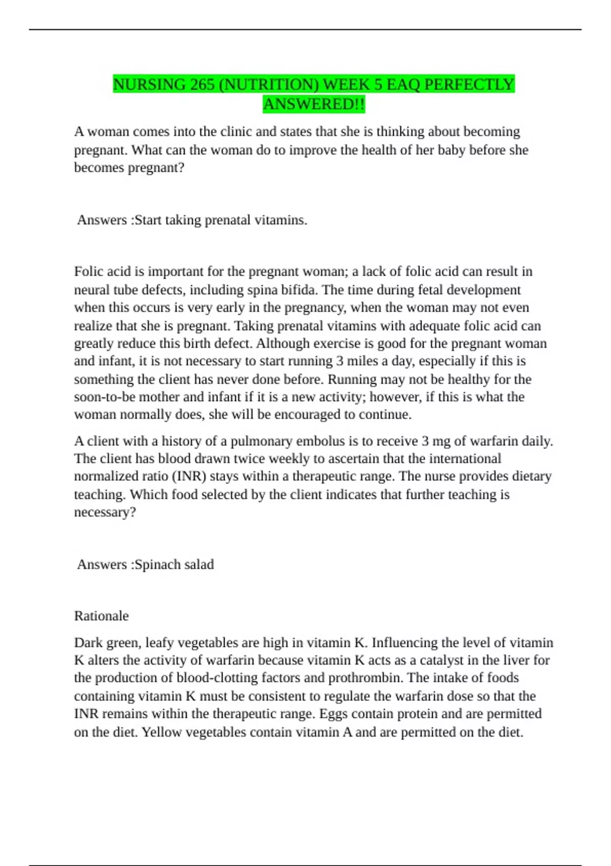 NURSING 265 (NUTRITION) WEEK 5 EAQ PERFECTLY