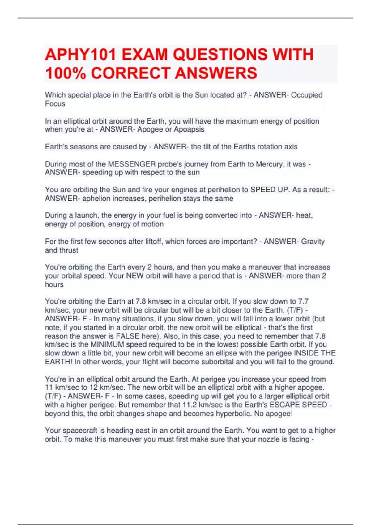 comet, then you are not in orbit around anything at all. (T/F) - ANSWER- F - As long as
