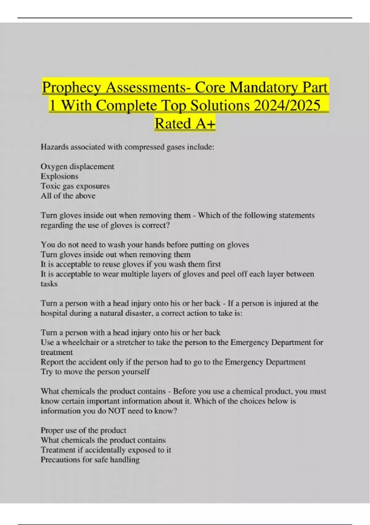 Prophecy Assessments- Core Mandatory Part 1 With Complete Top Solutions 2024/2025 Rated A+