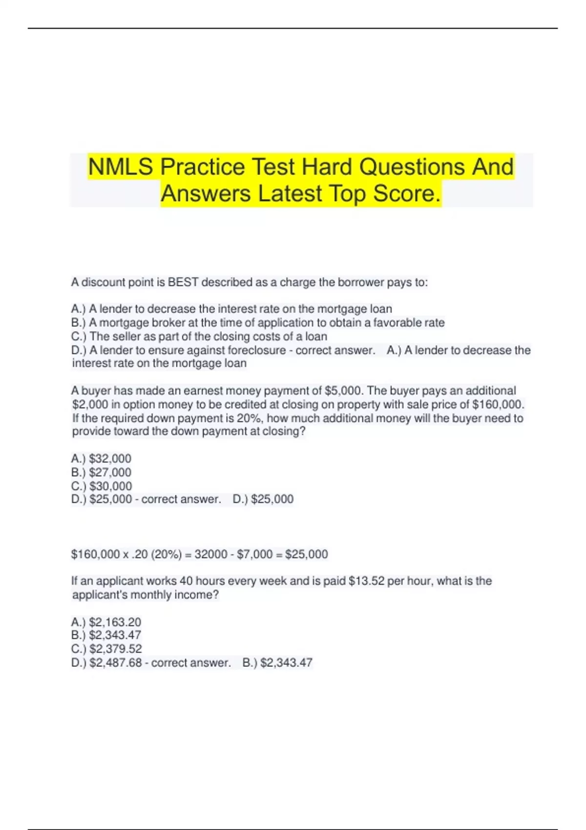 NMLS Practice Test Hard Questions And Answers Latest Top Score.