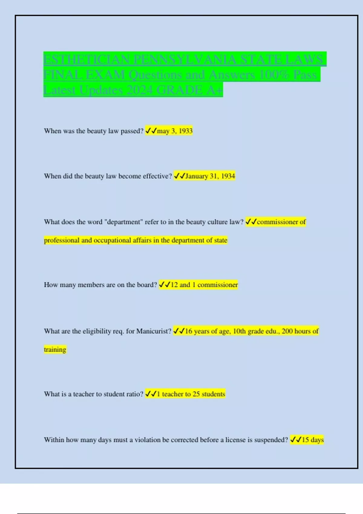 ESTHETICIAN PENNSYLVANIA STATE LAWS