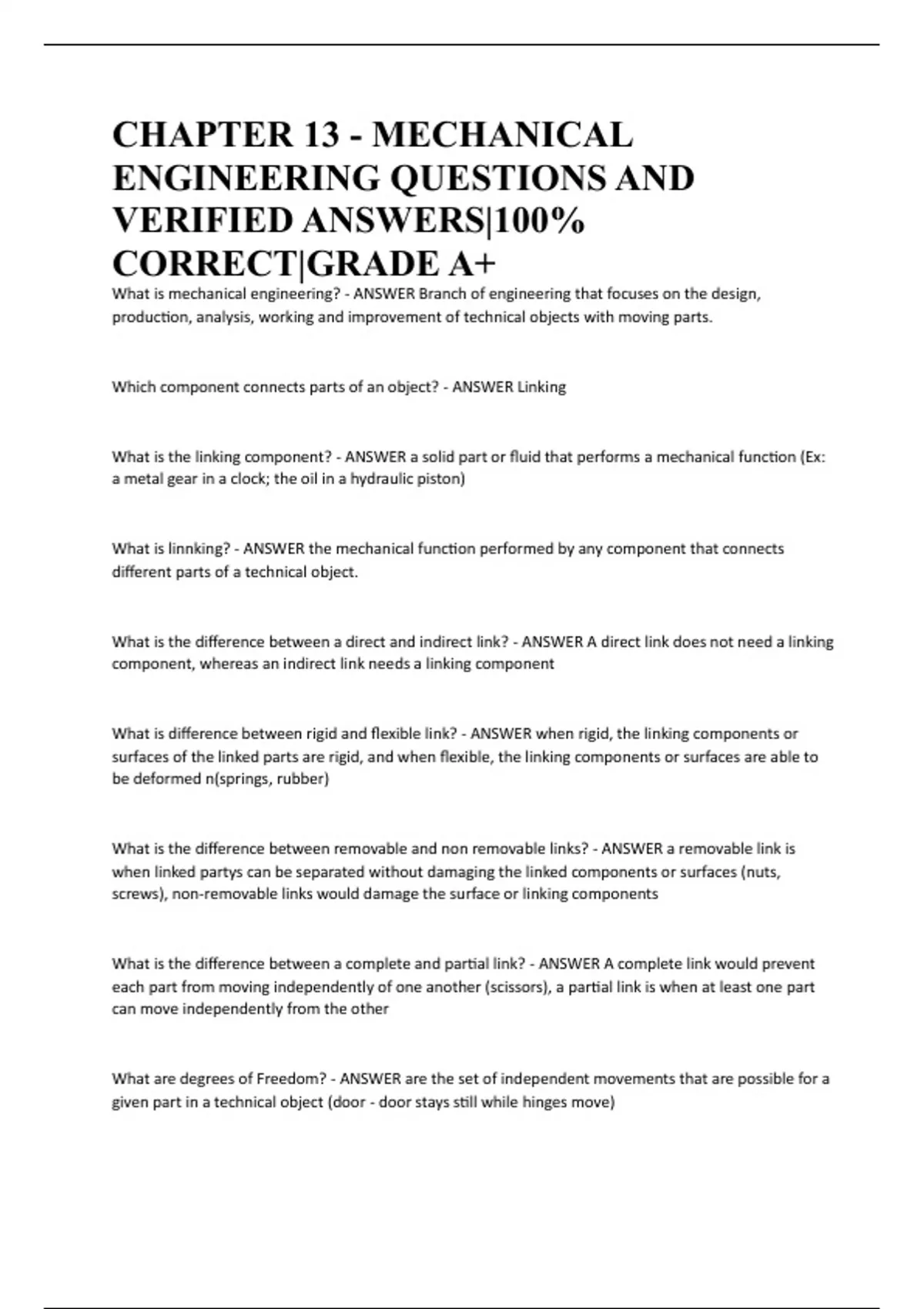 CHAPTER 13 - MECHANICAL ENGINEERING QUESTIONS AND VERIFIED ANSWERS|100% CORRECT|GRADE A+