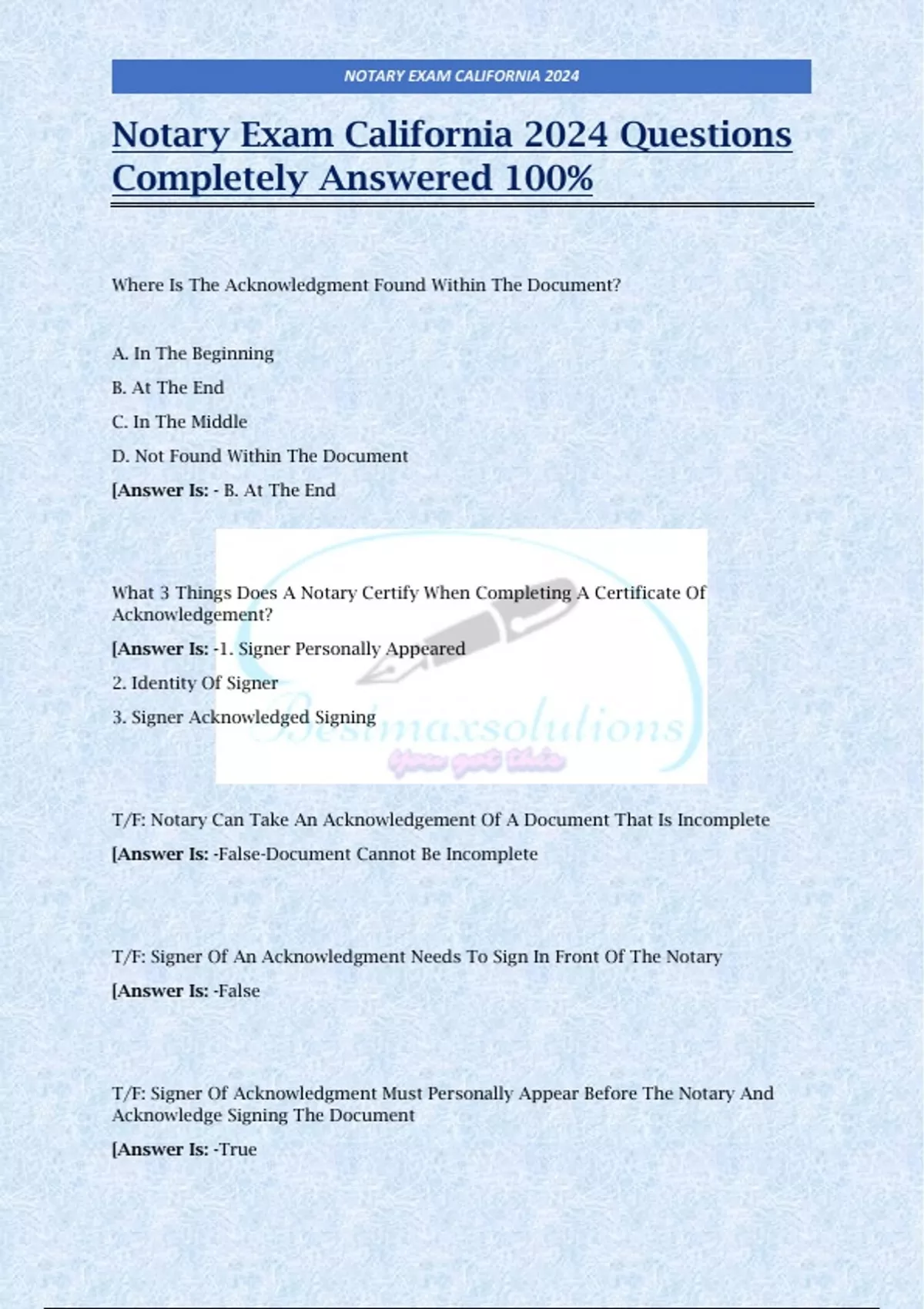 Notary Exam California 2024 Questions