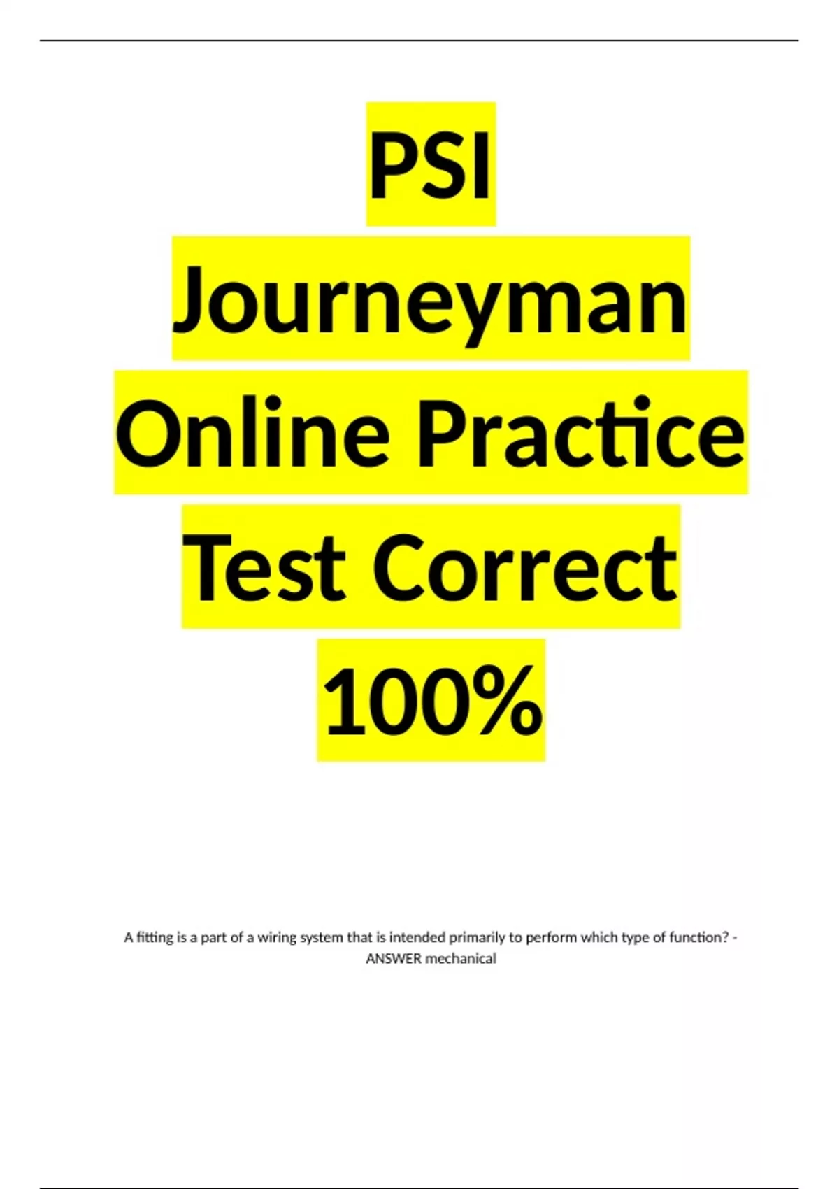 PSI Journeyman Online Practice Test Correct 100%