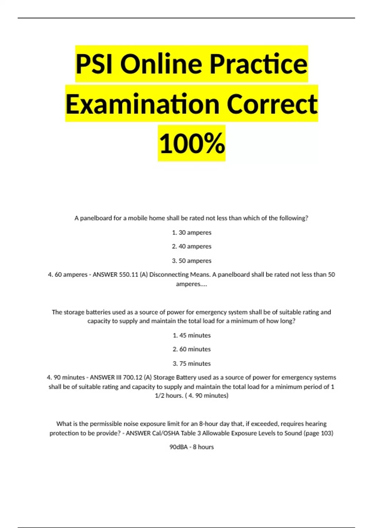 4. 60 amperes - ANSWER 550.11 (A) Disconnecting Means. A panelboard shall be rated not less than 50