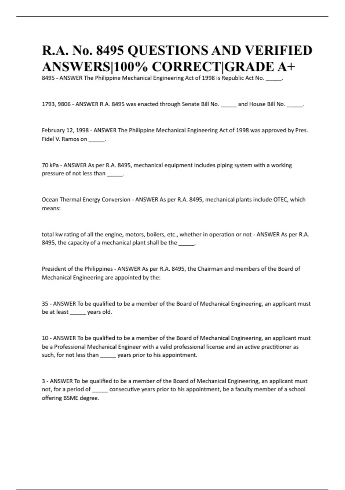8495 - ANSWER The Philippine Mechanical Engineering Act of 1998 is Republic Act No. _____.