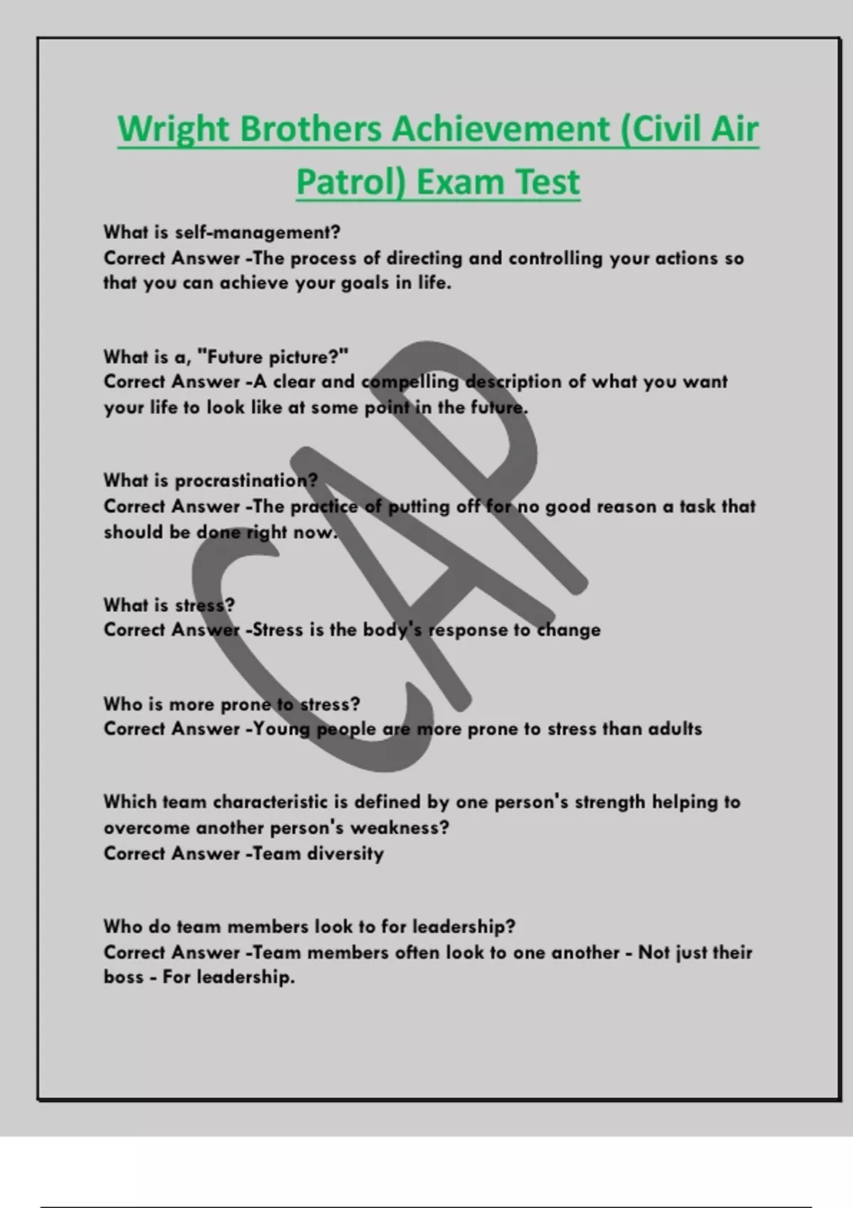 Wright Brothers Achievement (Civil Air Patrol) Exam Test