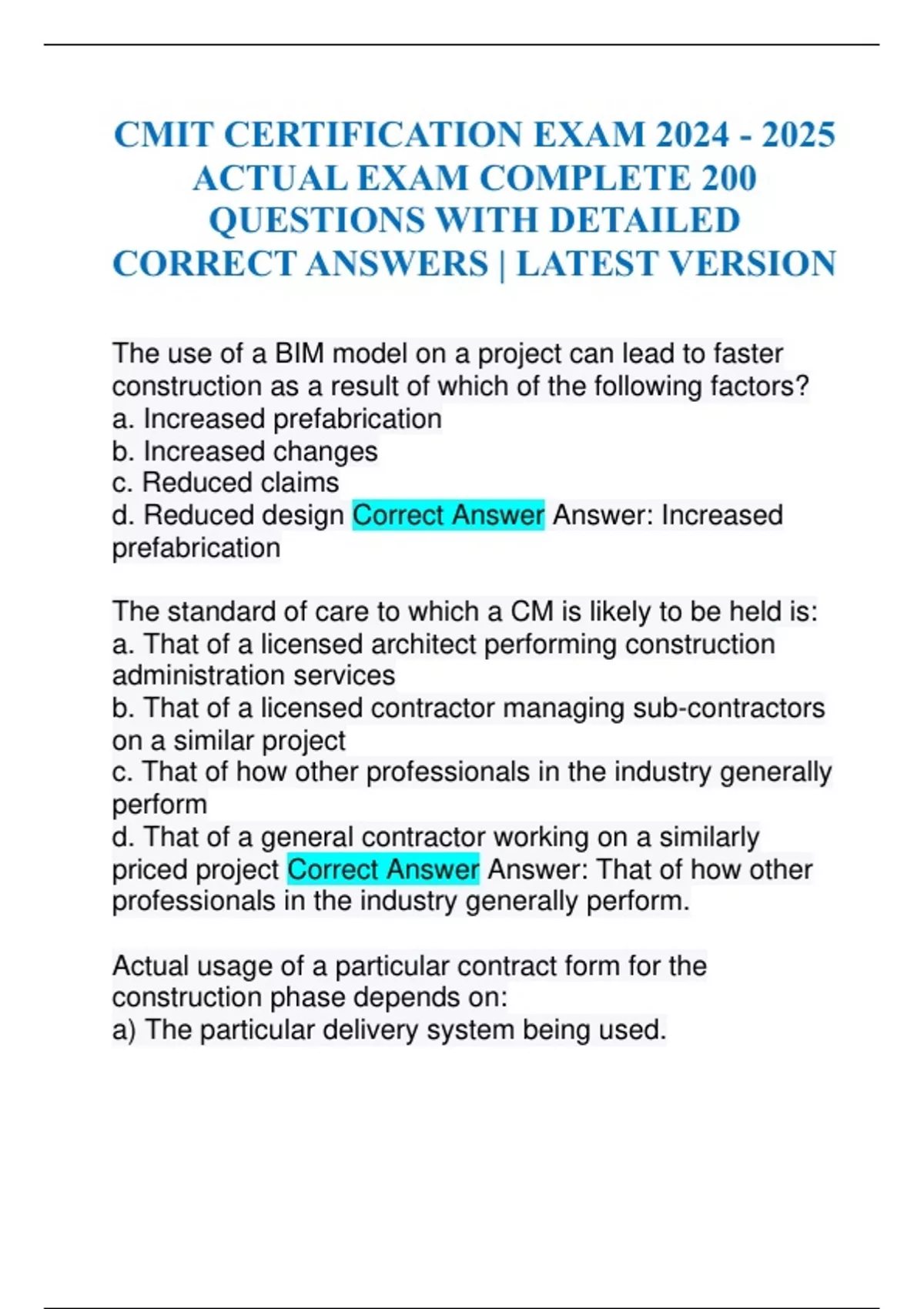 CORRECT ANSWERS | LATEST VERSION