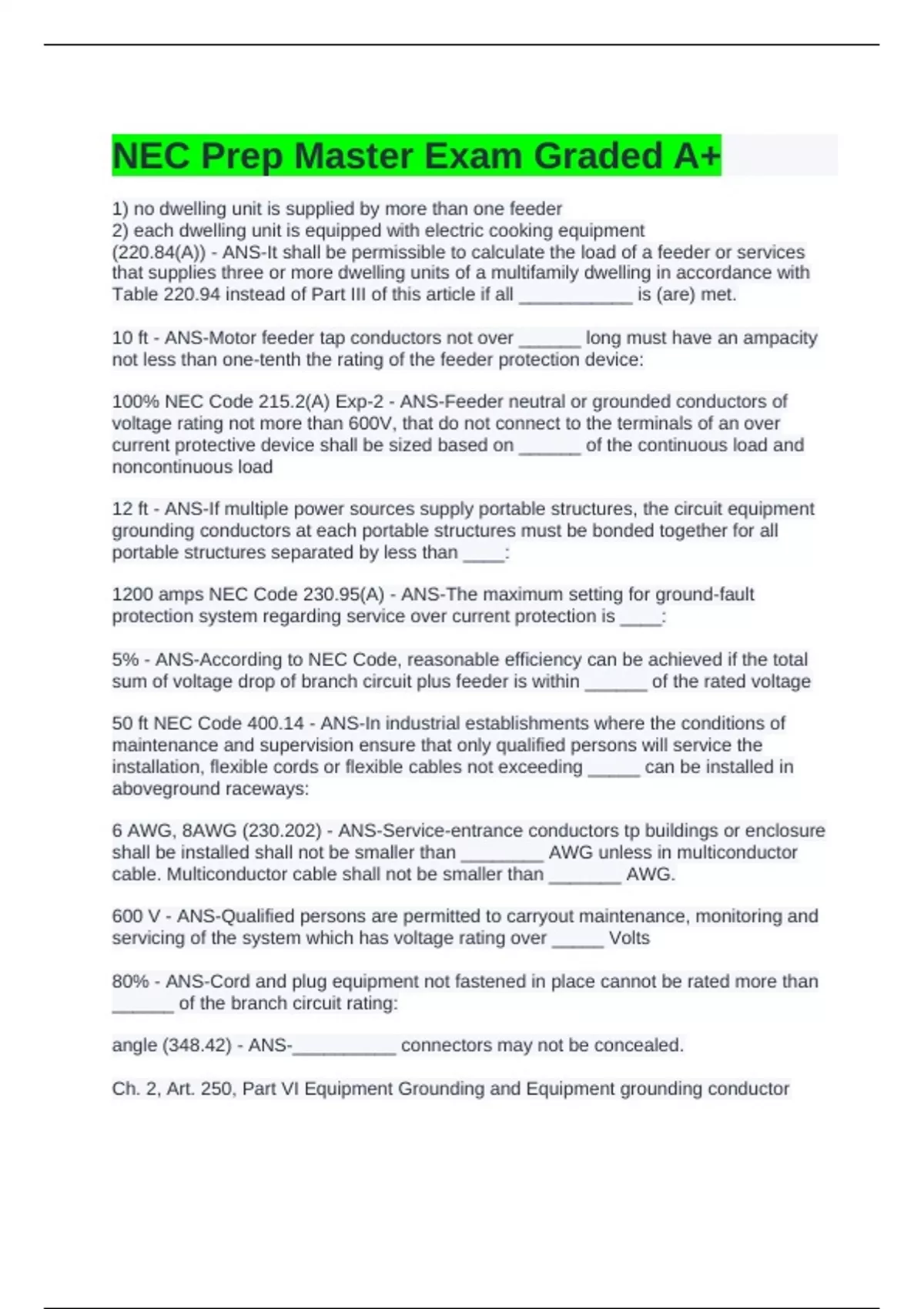 NEC Prep Master Exam Graded A+