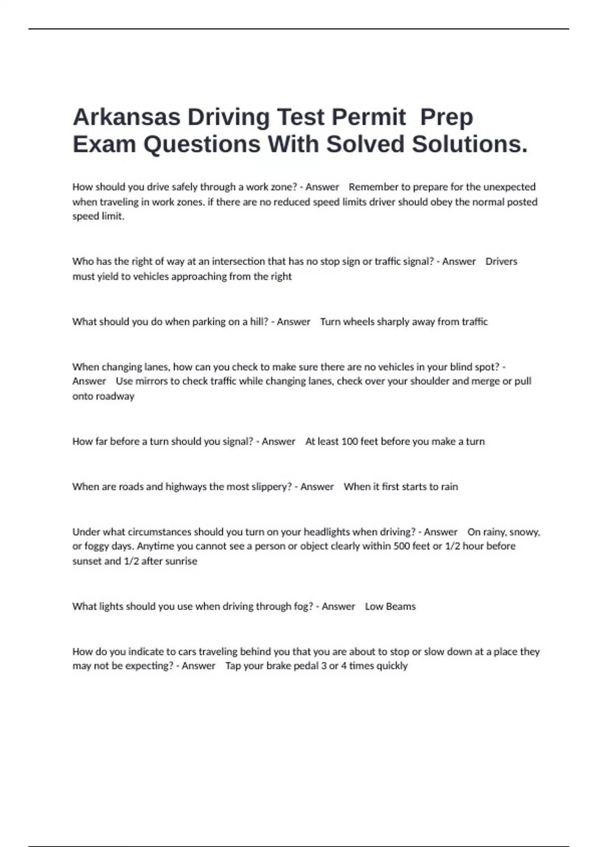 Arkansas Driving Test Permit Prep Exam Questions With Solved Solutions.