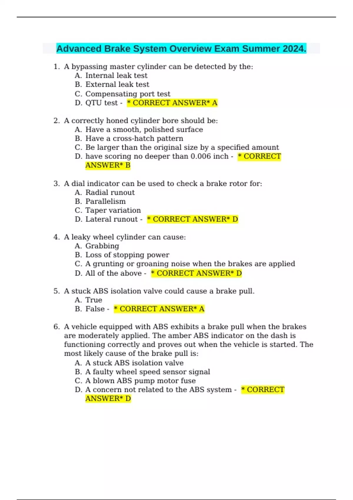 Advanced Brake System Overview Exam Summer 2024.
