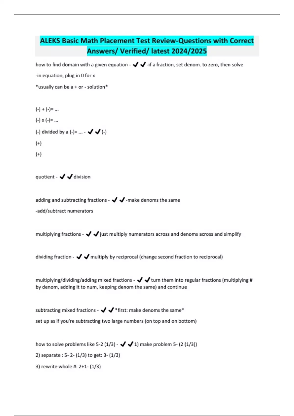 ALEKS Basic Math Placement Test Review-Questions with Correct
