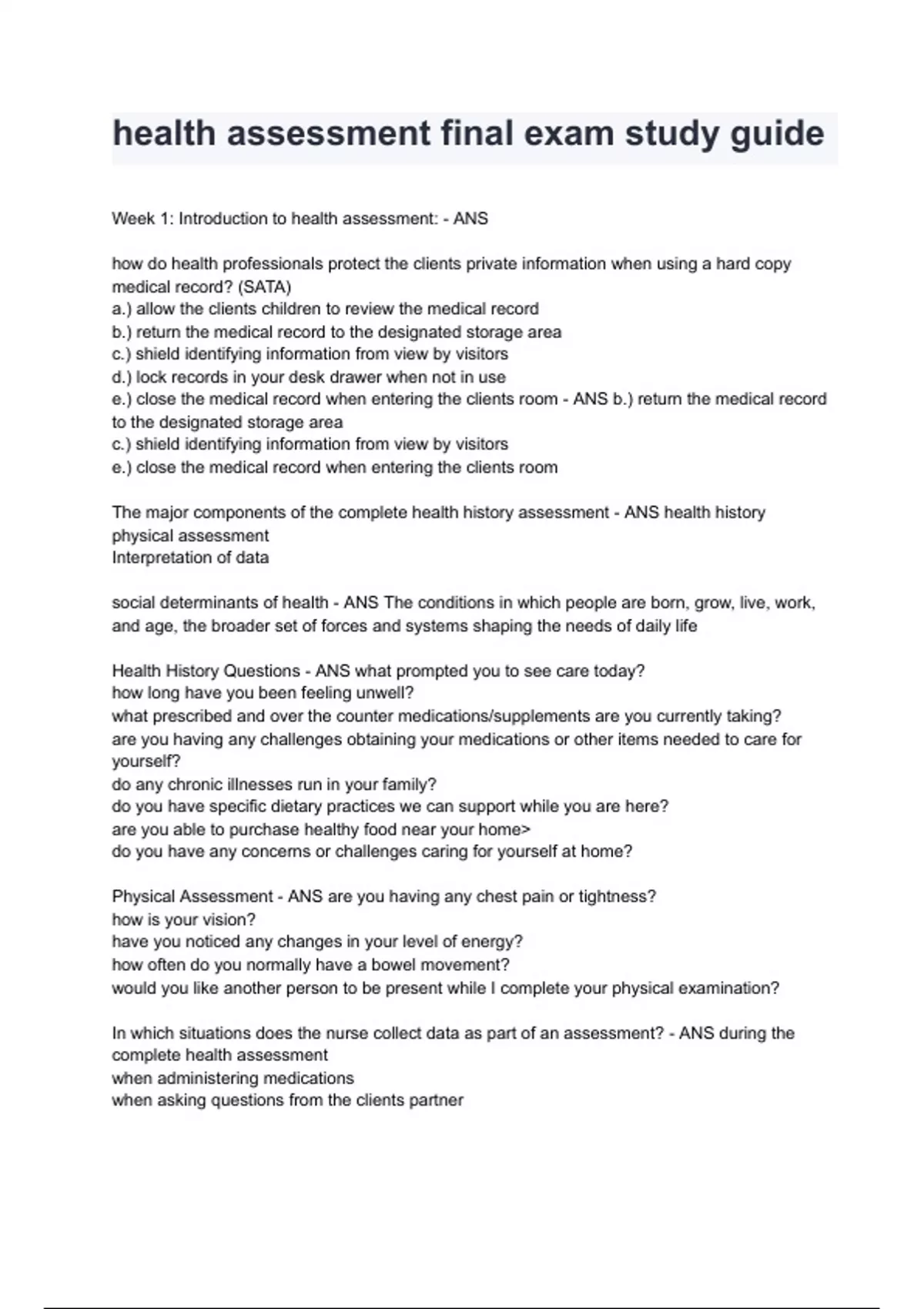health assessment final exam study guide