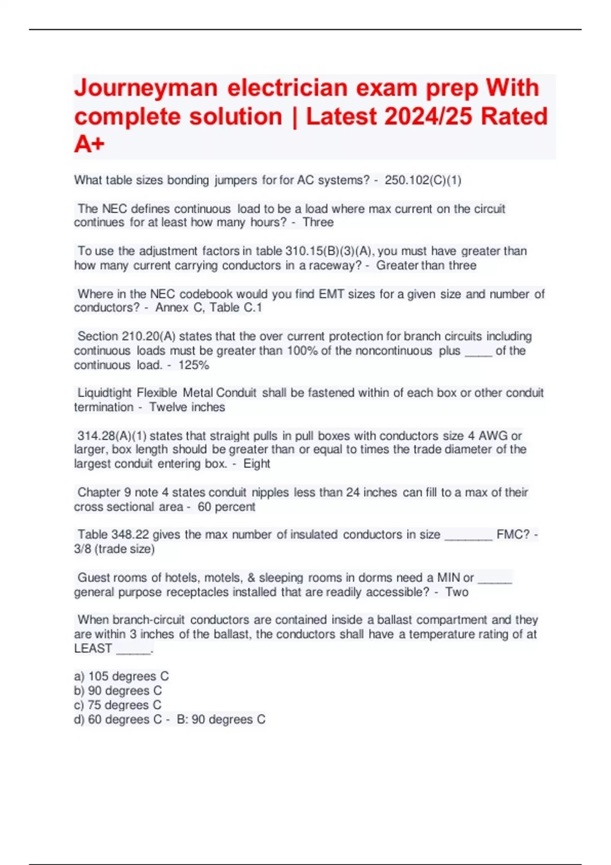 Journeyman electrician exam prep With complete solution | Latest 2024/25 Rated A+