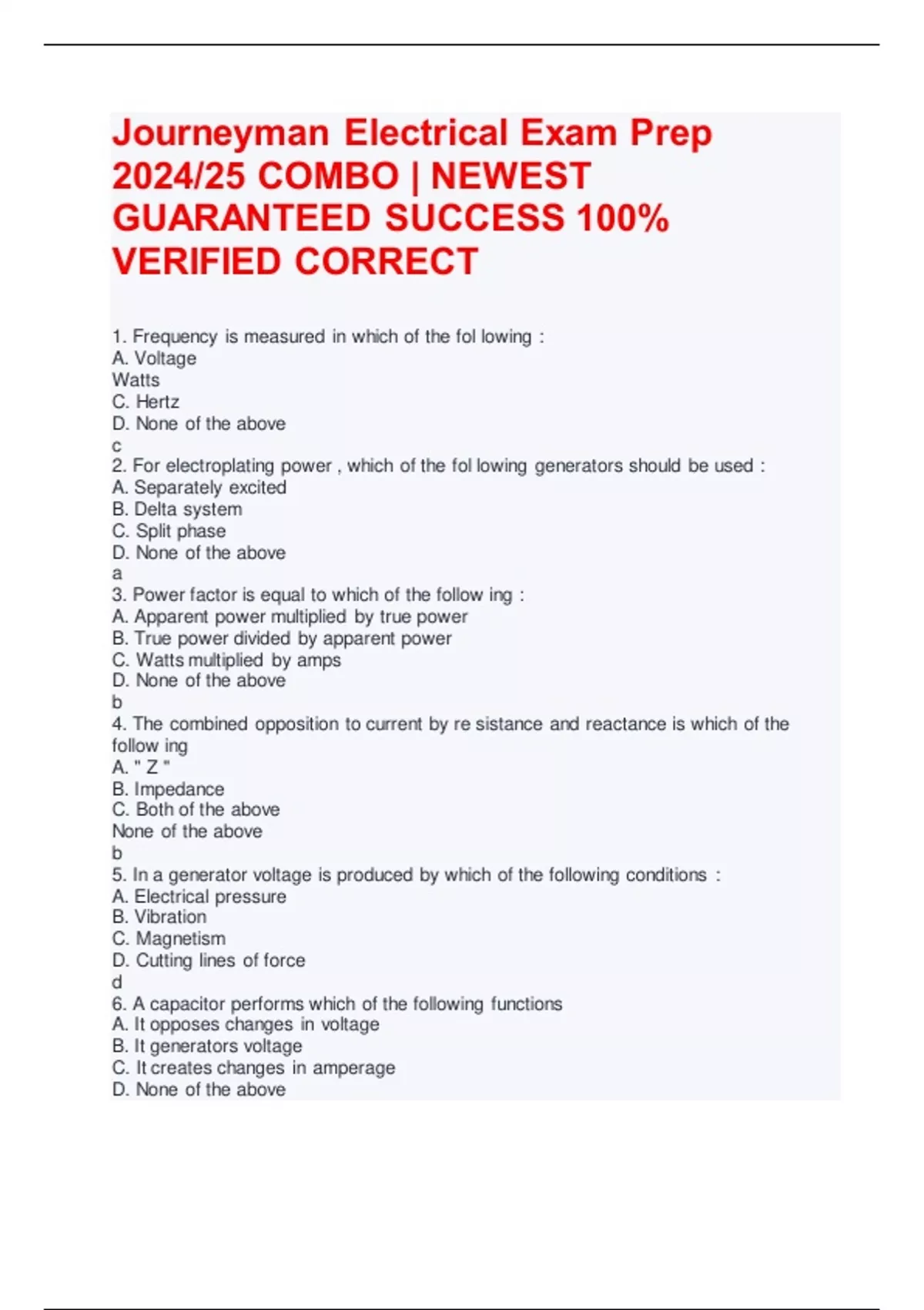Journeyman Electrical Exam Prep 2024/25 COMBO | NEWEST GUARANTEED SUCCESS 100% VERIFIED CORRECT