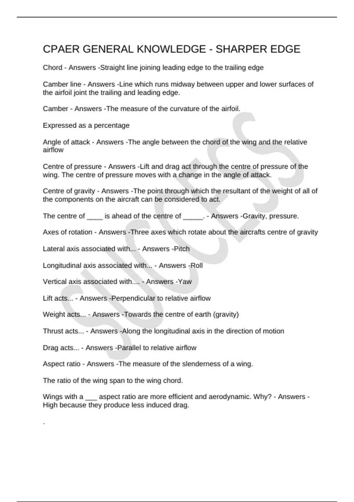 Chord - Answers -Straight line joining leading edge to the trailing edge