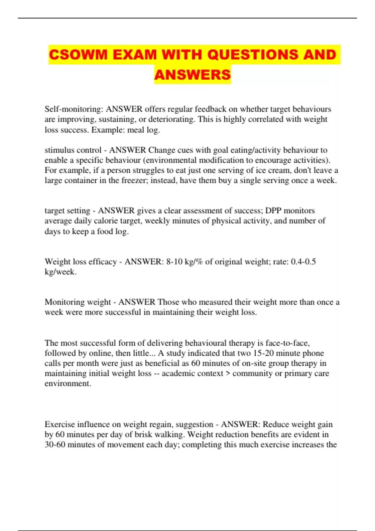 CSOWM EXAM WITH QUESTIONS AND