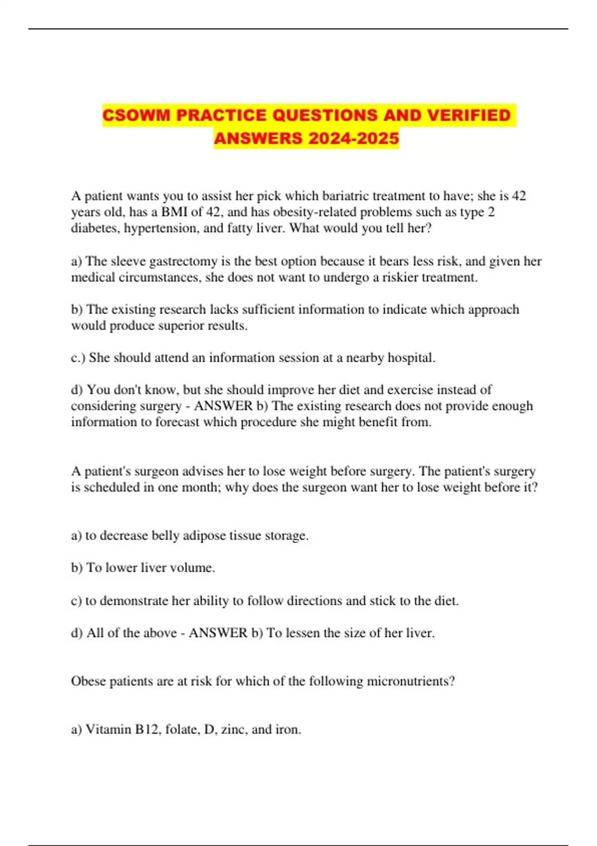 CSOWM PRACTICE QUESTIONS AND VERIFIED
