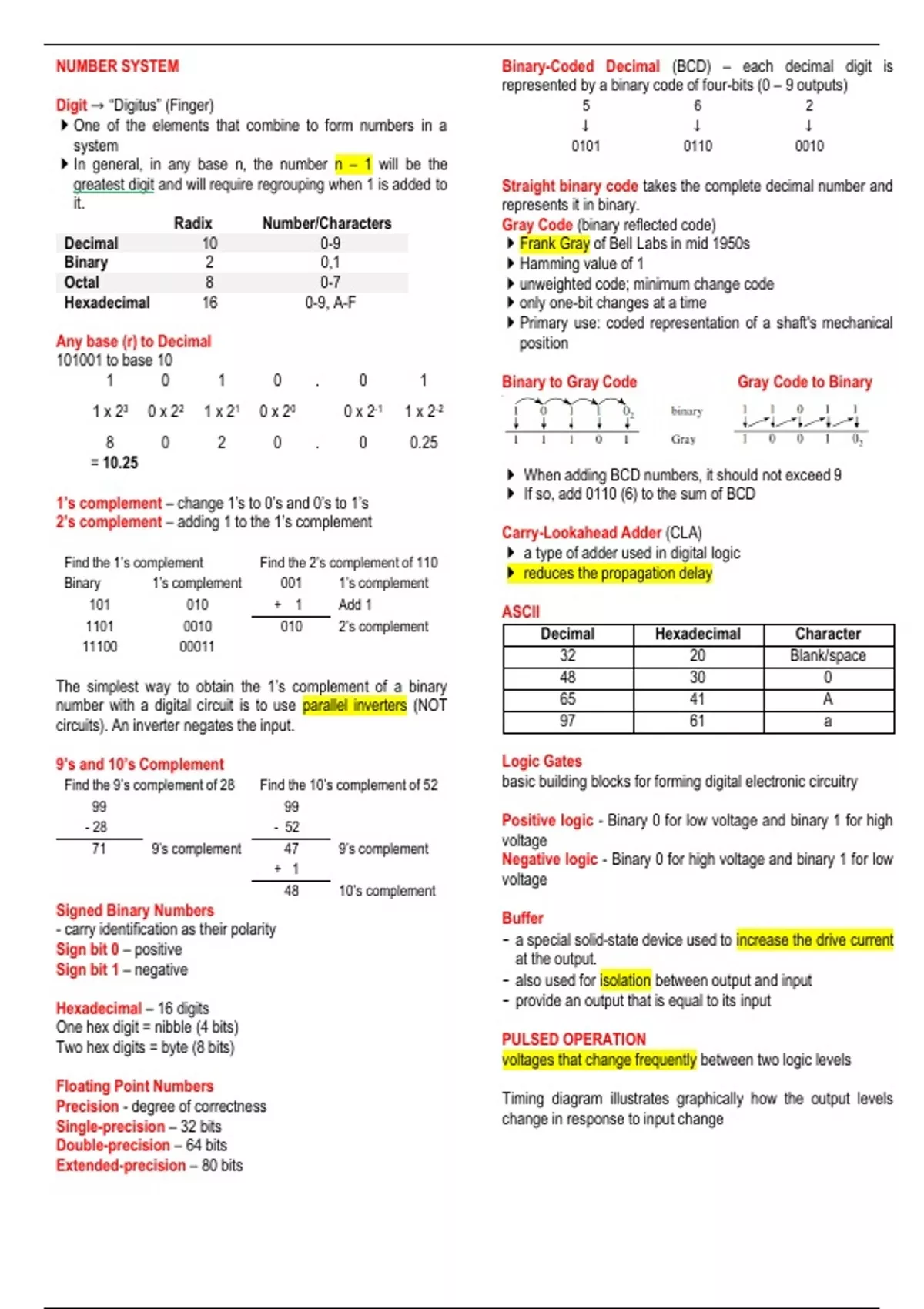 Summary of number system, flip-flops, signed binary numbers, Conversion of BCD, binary code and gray code.