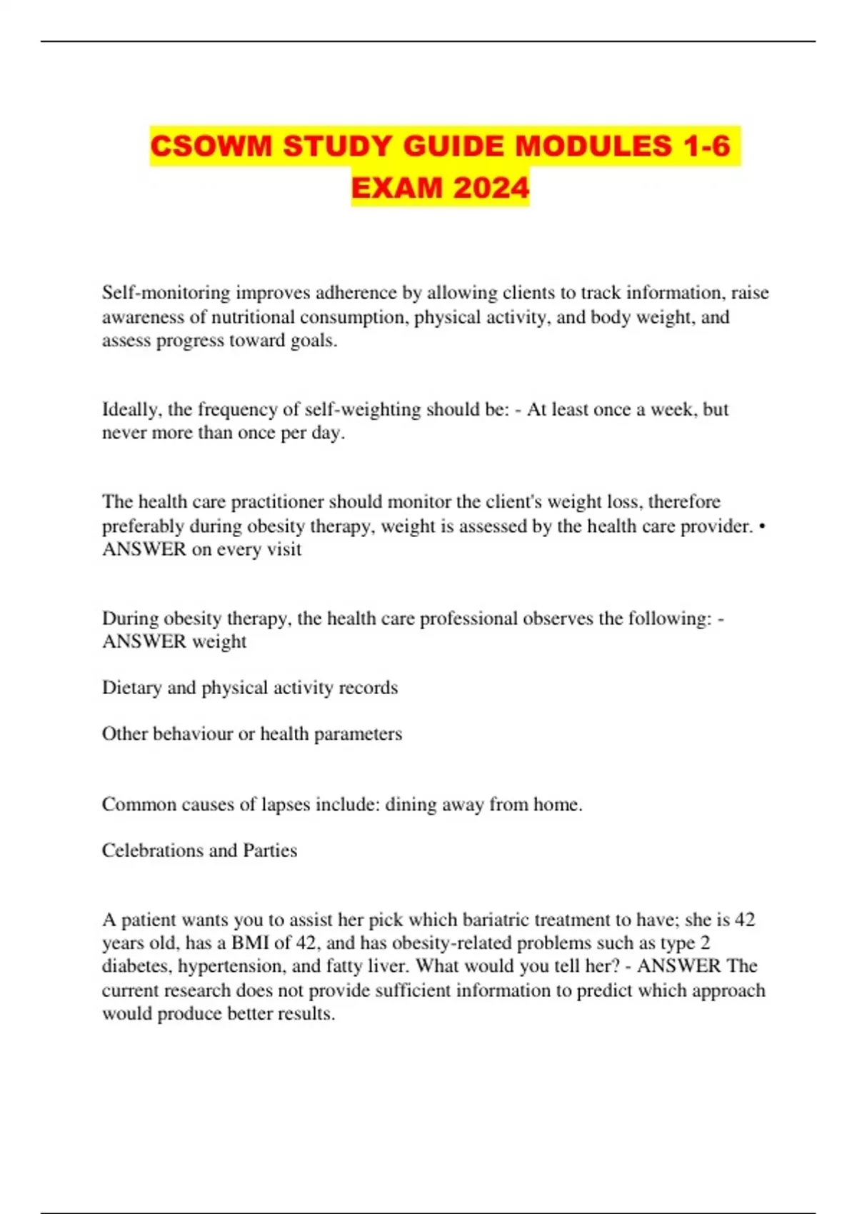 CSOWM STUDY GUIDE MODULES 1-6