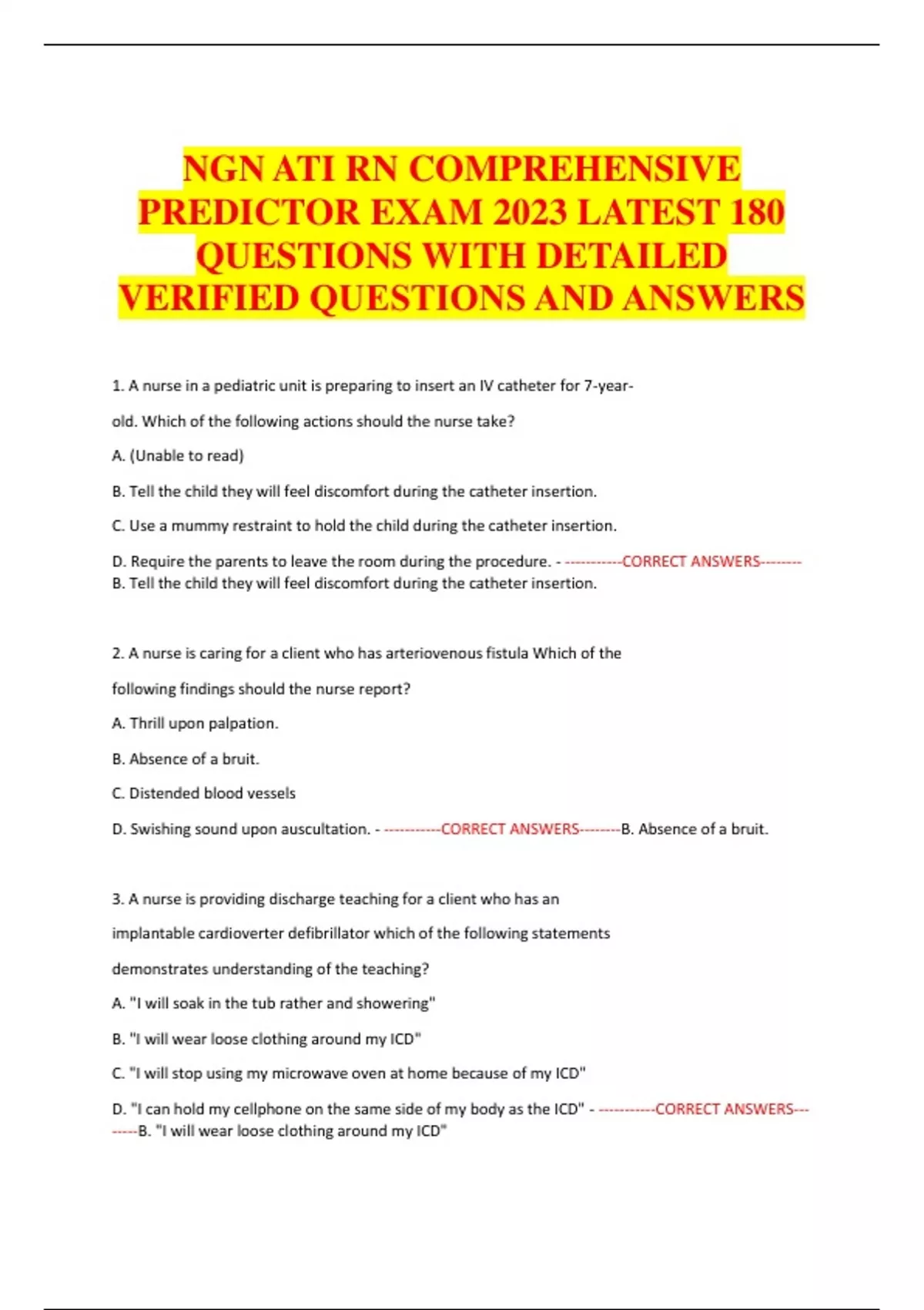 NGN ATI RN COMPREHENSIVE PREDICTOR EXAM 2023 LATEST 180 QUESTIONS WITH DETAILED VERIFIED QUESTIONS AND ANSWERS NGN ATI RN COMPREHENSIVE PREDICTOR EXAM 2023 LATEST 180 QUESTIONS WITH DETAILED VERIFIED QUESTIONS AND ANSWERS NGN ATI RN COMPREHENSIVE PREDICTOR EXAM 2023 LATEST 180 QUESTIONS WITH DETAILED VERIFIED QUESTIONS AND ANSWERS