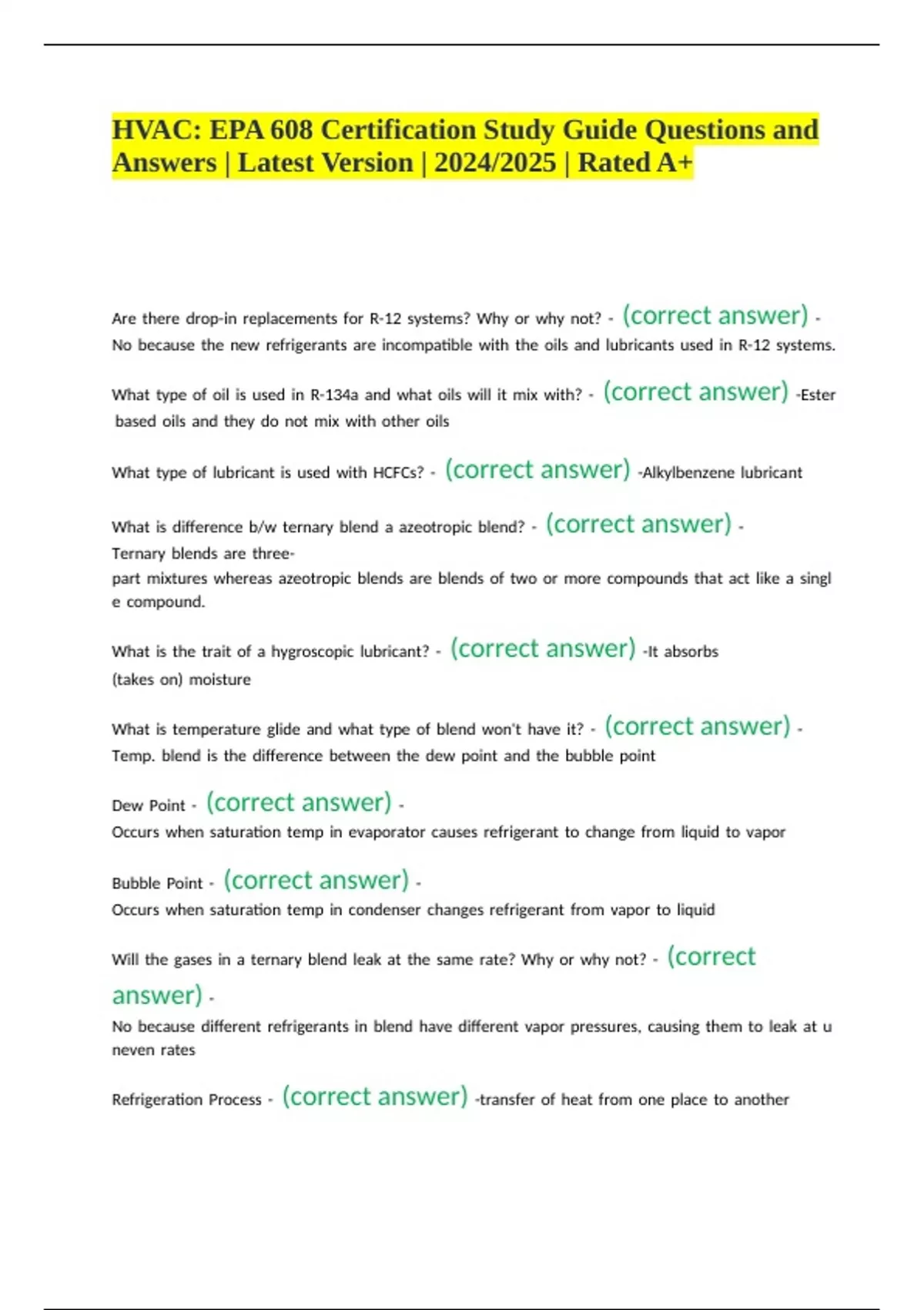 HVAC: EPA 608 Certification Study Guide Questions and Answers | Latest Version | 2024/2025 | Rated A+