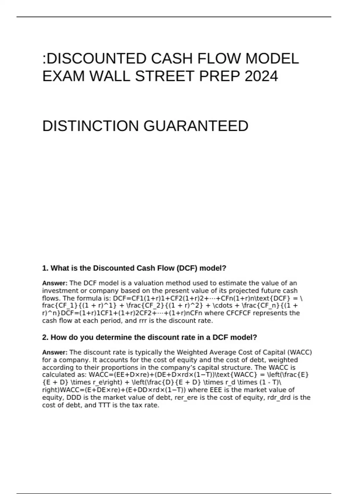 DISCOUNTED CASH FLOW MODELLING EXAM WALL STREET PREP 2024