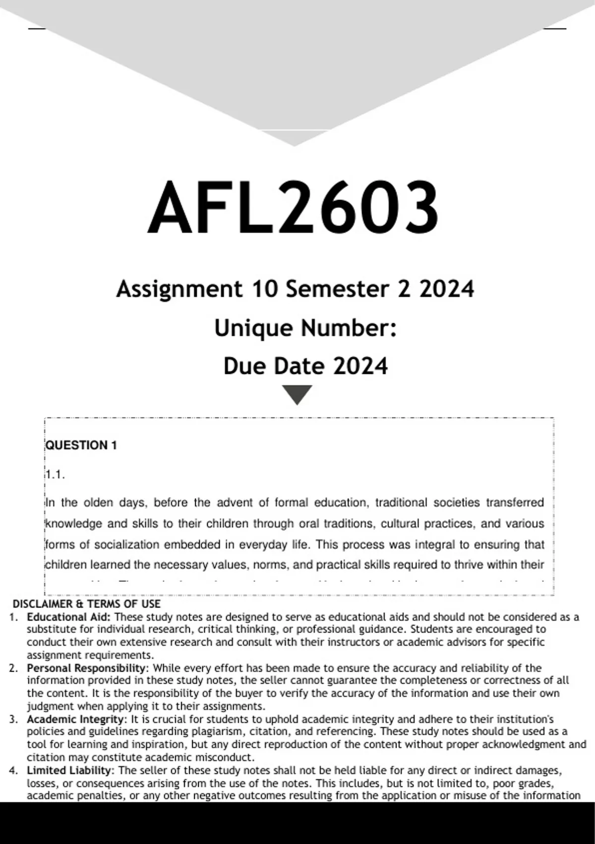 AFL2603 Assignment 1 (ENGLISH 10 ANSWERS) Semester 2 2024 - DISTINCTION GUARANTEED