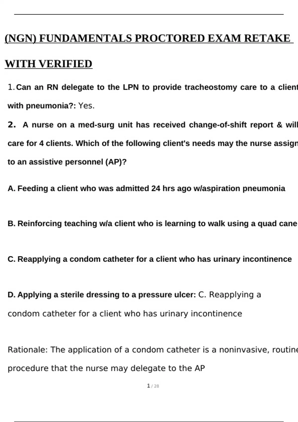 (NGN) FUNDAMENTALS PROCTORED EXAM RETAKE