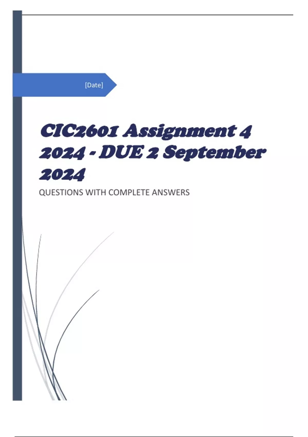 QUESTIONS WITH ANSWERS CIC2601 Assignment 4 2024 - DUE 2 September 2024